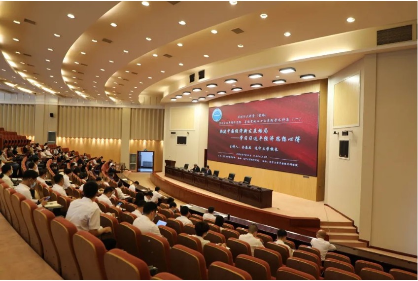为深入学习习近平经济思想、迎接党的二十大胜利召开,9月15日上午,辽宁大学在蒲河校区校部办公楼学术报告厅举办了“宋则行大讲堂”首场报告会。辽宁大学党委副书记、校长余淼杰教授作了题为《构建中国经济新发展格局——学习习近平经济思想心得》的学术报告。