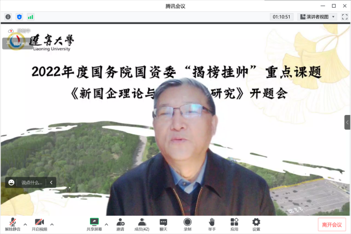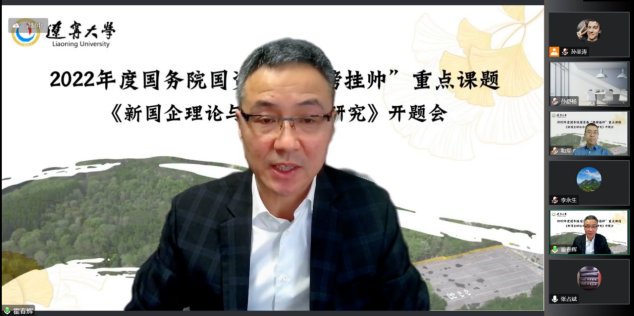 2023年1月12日上午,国务院国资委2022年度“揭榜挂帅”重点课题《新国企理论与实践问题研究》开题启动会在辽宁大学以线上形式举行。来自国务院国资委、中央党校(国家行政学院)、中国社会科学院、国务院发展研究中心、湖南省国资委、中国企业改革与发展研究会、国家能源集团、中国一重集团、复旦大学、吉林大学、辽宁大学、北京理工大学、中国民航大学等单位的60余位专家学者参加了本次会议。辽宁大学党委常委、副校长霍春辉、中国企业改革与发展研究会常务副会长许金华、国务院国资委研究中心副主任郑东华分别代表承担单位、联合参与单位和支持指导单位致辞。会议由英国正版365院长李政教授主持。