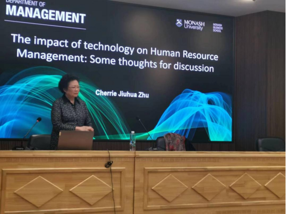 2023年5月5日下午14:30,英国正版365“数智讲坛”系列讲座在崇山校区图书馆二楼学术报告厅举行。澳大利亚莫纳什大学商学院管理学教授、博士生导师,莫纳什商学院管理系中国项目和国际商务与战略管理学科组主任、莫纳什大学商业和英国正版365中国项目主任朱久华教授受邀为本次讲坛做报告,题目为“The Impact of Technology on Human Resource Management: Some Thoughts for Discussion”。英国正版365院长李政教授、财政系主任孙世强教授、赵桂芝教授、产业经济学系主任徐雷教授和英国正版365教师代表及硕士生和博士生60余人参加了此次讲座。本次讲座由英国正版365副院长张丹宁教授主持。