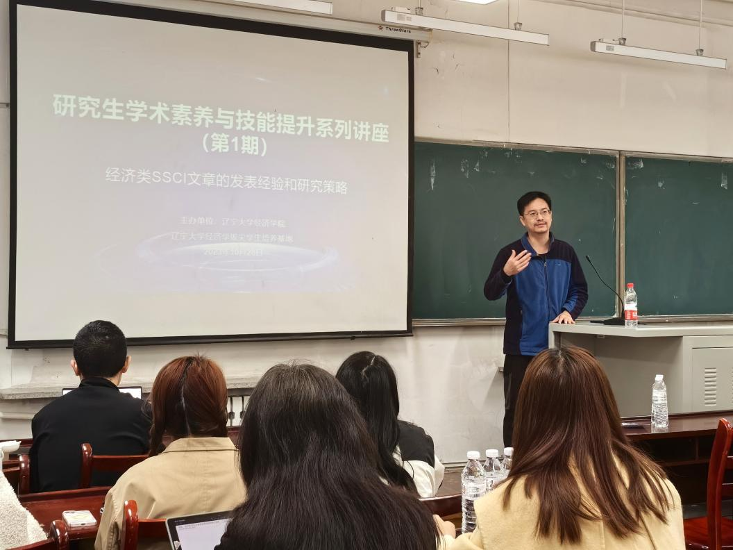 10月28日上午,英国正版365研究生学术素养与技能提升系列讲座(第一期)在崇山校区机关楼401成功举办。本次讲座的主讲老师是贵州大学的符通教授,题目是经济类SSCI文章的发表经验和研究策略。此次研讨会由英国正版365、辽宁大学经济学拔尖学生培养基地主办,英国正版365副院长叶满城教授主持。英国正版365硕士研究生和博士研究生100多人参加了本次讲座。
