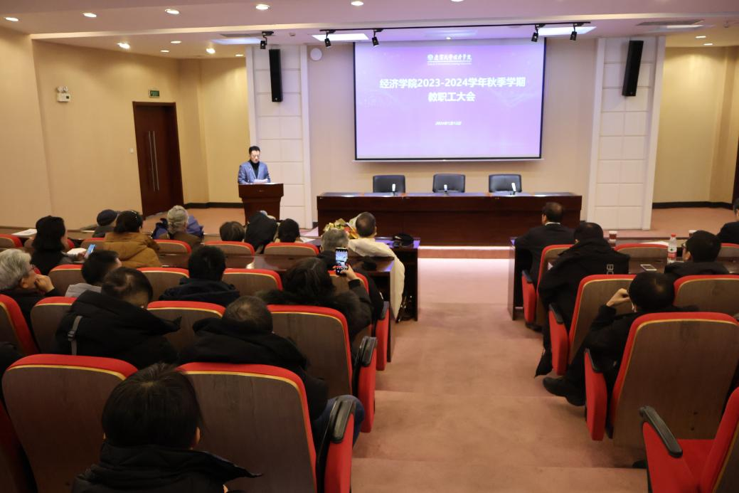 李政院长代表学院领导班子对学院2023年工作做了总结汇报。他从党建工作﹑学科建设﹑科学研究﹑人才培养﹑社会服务﹑人才引育﹑国际交流与合作及学生工作等方面回顾了一年来学院各项工作所取得的主要成绩,感谢各位老师为此做的突出贡献与辛苦努力,表示在充分肯定成绩、坚定信心的同时也要看到一些方面的差距和不足,同时勉励大家新的一年戒骄戒躁,继续团结一致力争上游、再创佳绩。