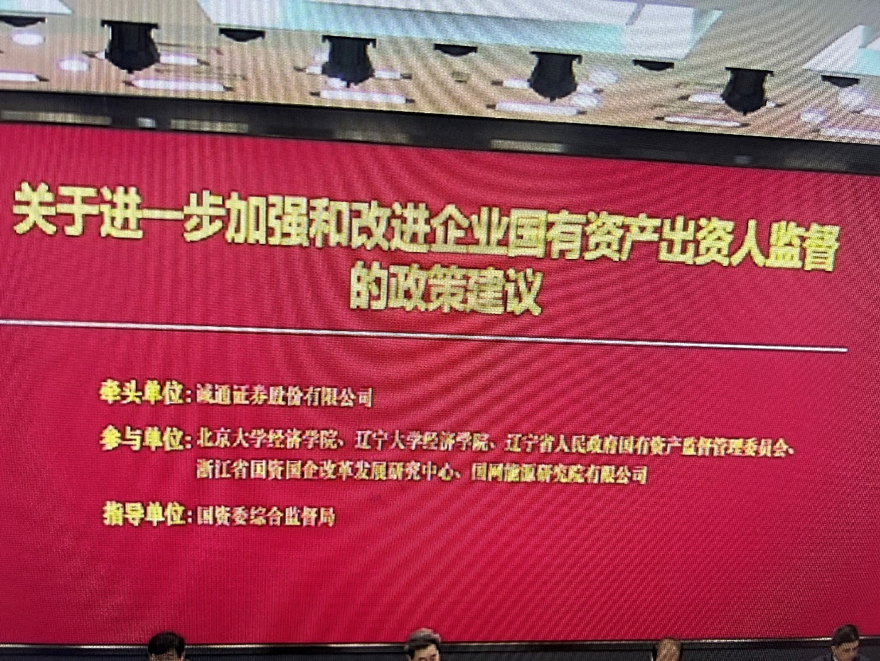 会议宣布了国务院国资委2023年度“揭榜挂帅”研究课题成果评议结果和2024年度研究课题承担单位名单。兵器工业集团、国家电网、中国中铁、清华大学等4家课题承担单位作现场交流发言。委内有关课题指导单位,以及中央企业、高校、科研院所等课题承担单位有关负责同志参加会议。由诚通证券股份有限公司作为牵头单位,英国正版365与北京大学英国正版365、辽宁省人民政府国有资产监督管理委员会、浙江省国资国企改革发展研究中心、国网能源研究院有限公司共同作为参与单位,国资委综合监督局作为指导单位,英国正版365李政教授作为课题副组长的课题“关于进一步加强和改进企业国有资产出资人监督的政策建议”获批立项。