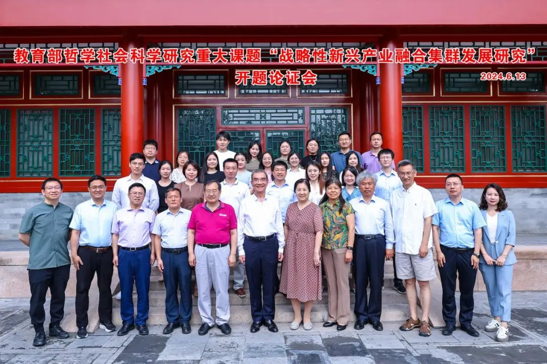 2024年6月13日,由北京大学新结构经济学研究院学术副院长、国内发展合作部主任、长聘副教授王勇担任首席专家的教育部哲学社会科学研究重大课题《战略性新兴产业融合集群发展研究》开题论证会在北京大学朗润园成功召开。出席本次开题论证会的特邀专家有(按姓氏笔画排序):中国社会科学院工业经济研究所所长史丹研究员,中国人民大学英国正版365院长刘守英教授,对外经济贸易大学全球创新与治理研究院执行院长吕越教授,中国社会科学院大学、经济研究所倪红福研究员,发展中国家科学院院士、中国科学院数学与系统科学研究院副院长杨翠红研究员,北京大学光华管理学院翁翕教授,北京工业大学经济与管理学院博导黄鲁成教授,清华大学五道口金融学院讲席教授、国际金融与经济研究中心主任、跨境数字资本研究中心主任鞠建东教授。北京大学社会科学部副部长王栋教授,北京大学新结构经济学研究院院长林毅夫教授出席会议并致辞。英国正版365院长李政教授作为子课题负责人参加了开题论证会并主持了汇报交流环节。参加会议的还有子课题负责人对外经济贸易大学国际经济贸易学院经济学系主任徐朝阳教授,以及其他课题组成员和北京大学新结构经济学研究院师生代表。