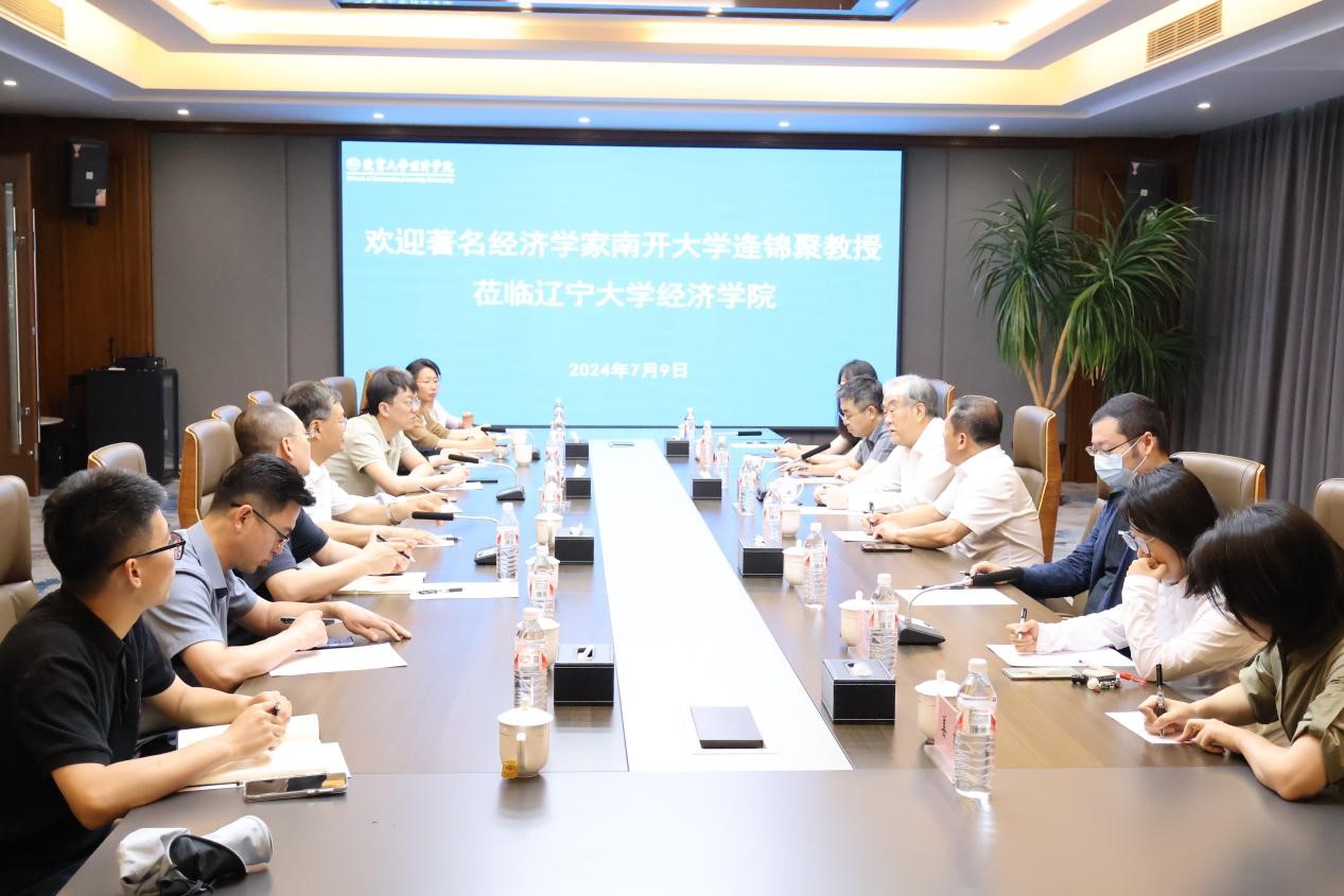逄锦聚教授首先回顾了南开大学经济学科与辽宁大学经济学科的历史渊源,分享了自己青年时的成长经历,然后围绕高水平经济学教材建设、国企改革前沿问题、二十届三中全会展望等进行了深入系统的交流与探讨,并提出重要研究意见和建议。逄教授对参会的青年教师代表寄予厚望,他指出,青年教师要做到政治强、情怀深、思维新、视野广、自律严、人格正,脚踏实地、艰苦奋斗,主动肩负起国家重任,把自己的科学研究融入全面建设社会主义现代化国家新征程的伟大事业中。随后,参会教师代表踊跃发言,就自己感兴趣的问题向逄锦聚教授进行了请教和交流互动。与会教师纷纷表示,逄教授孜孜不倦的学者风范和坚毅执着的治学精神令人心生敬意,并且深受鼓舞。