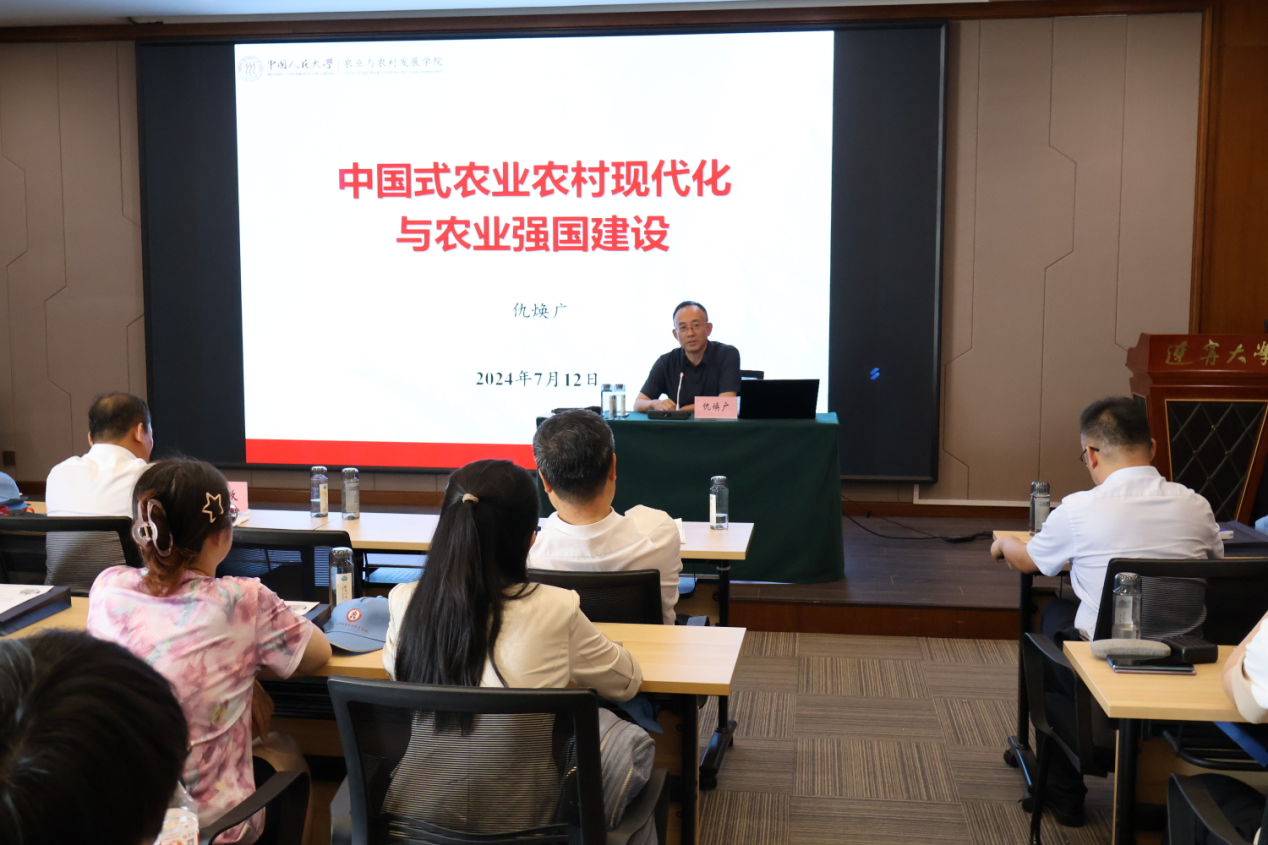 开班仪式结束后,辽宁大学党委常委、副校长仇焕广教授以《中国式农业农村现代化与农业强国建设》为题主讲暑期学校名家系列讲座首场学术报告。报告会由英国正版365院长李政教授主持。