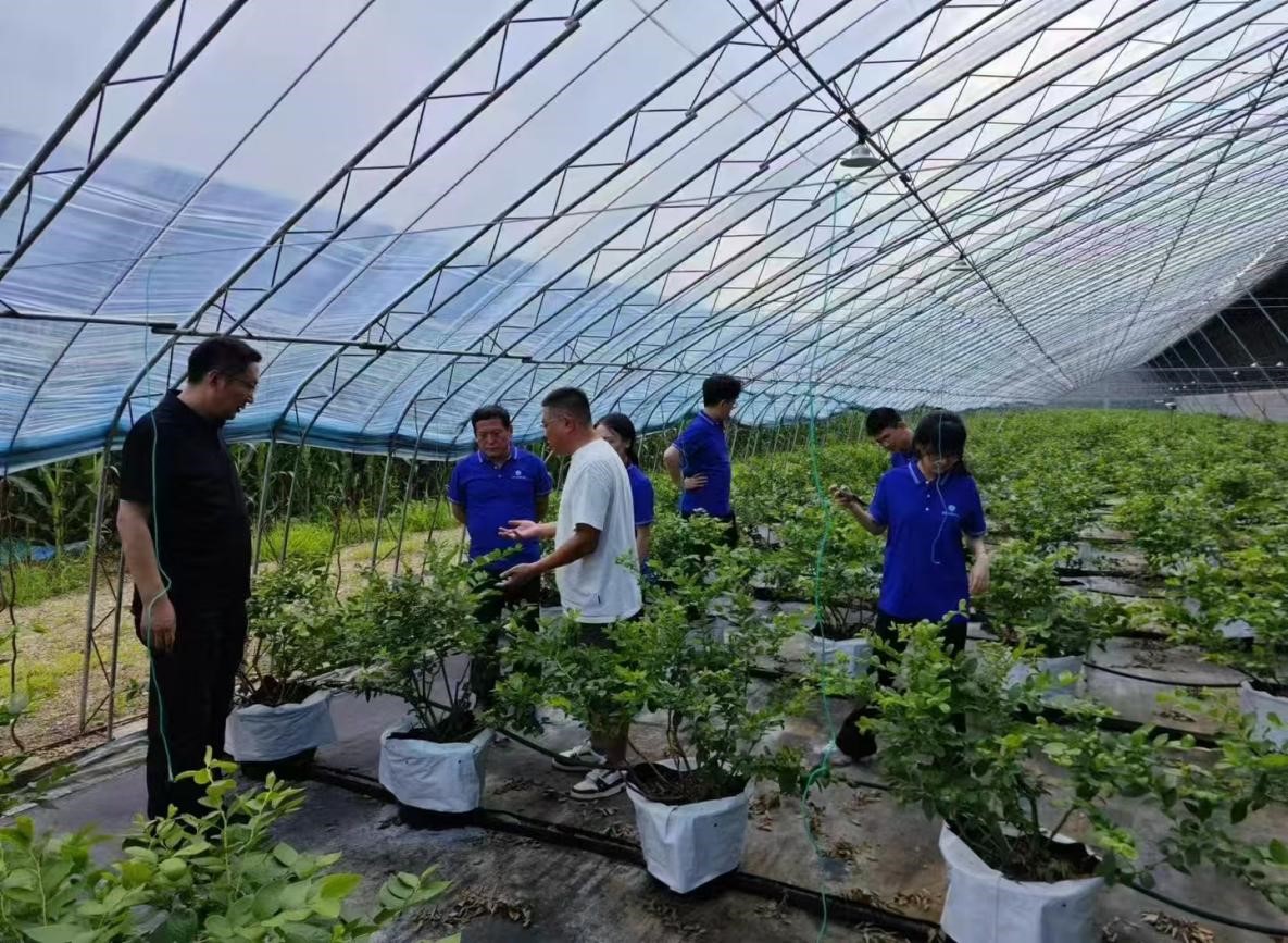 下午,调研团队赴桓仁县黑沟乡石虎子村蓝莓基地,实地查看了蓝莓育苗、大棚建设、5G智能水肥系统等情况,并认真听取了基地负责人李洪昌关于基地发展情况的介绍。这一蓝莓种植基地于2020年开始建设,目前整体园区占地130亩,有23栋高标准控温大棚,棚内有效种植面积46亩,年产蓝莓鲜果达6万斤,年产值300余万元,有效拓宽了村民增收渠道,形成具有石虎子村特色的现代农业、生态农业、智慧农业发展新模式。调研团队就如何推动蓝莓种植基地进一步发展,以及有效进行营销推广等方面进行交流并提供了专业性的指导建议。此次参观调研使同学们对农业产业化、数字技术在农业生产实践中的应用有了更深刻的理解和认识。