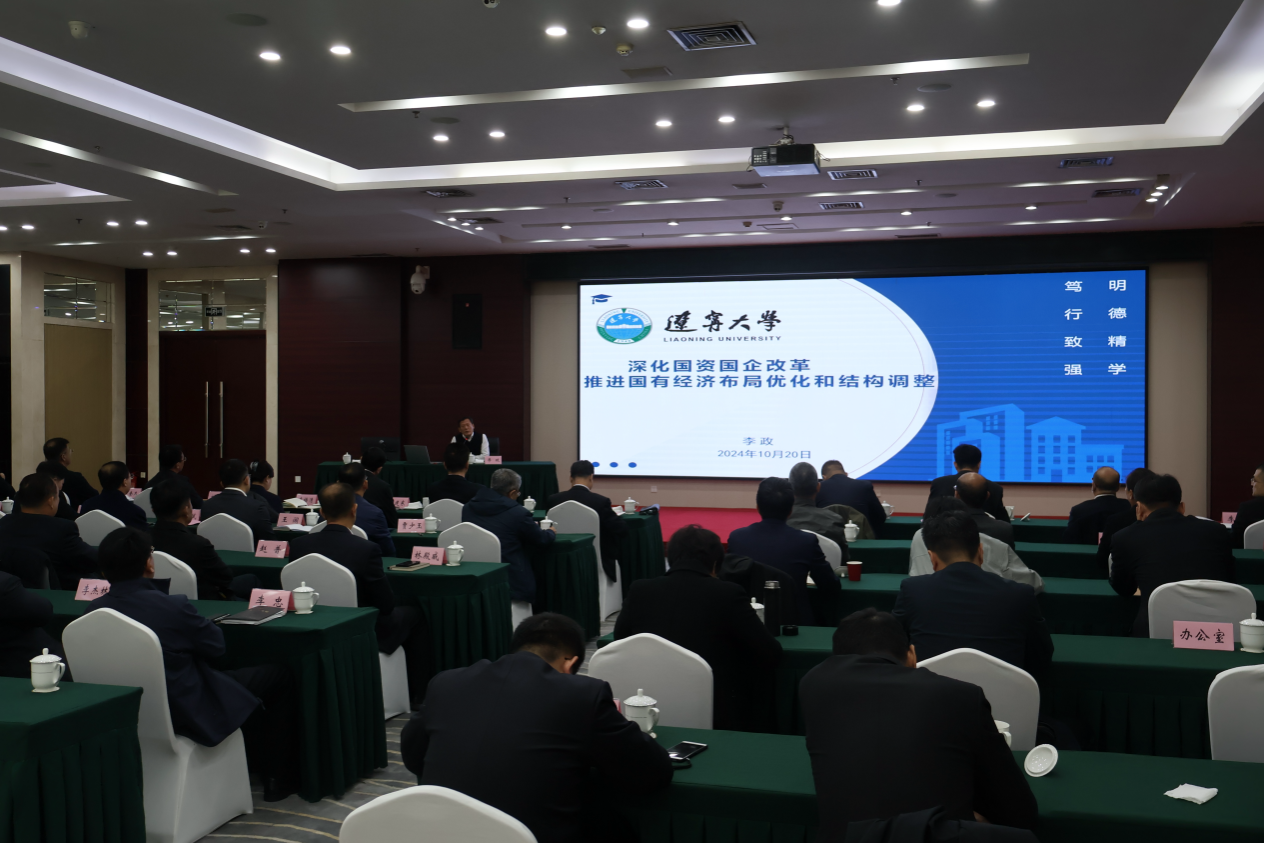 在两个多小时报告中,李政教授首先回顾了国资国企改革的历程与成就,进而深入阐释了二十届三中全会关于深化国资国企改革的有关精神,解读了坚持和落实“两个毫不动摇”的必要性与重大意义,强调坚持“两个毫不动摇”关键是保证各种所有制经济依法平等使用生产要素、公平参与市场竞争、同等受到法律保护,促进各种所有制经济优势互补、共同发展,对国有经济和民营经济协同发展中存在的问题进行了分析,并提出有关政策建议。进而对增强国有经济核心功能、提高核心竞争力,深化国有资本投资、运营公司改革,建立国有企业履行战略使命评价制度等问题进行了讲解。在此基础上,李政教授重点分析了国有经济布局优化与结构调整的历史脉络、理论基础、基本原则与目标方向,深入回答了当前国有经济布局优化结构调整的重点为什么是“三个集中”,如何实现“三个集中”。最后,根据东北地区发展新质生产力的必要要求和维护“五大安全”的重大使命,提出东北地区国有经济深化改革和布局结构调整的具体要求和举措。
