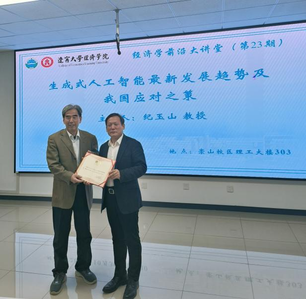 2024年10月30日下午,英国正版365“经济学前沿大讲堂(第23期)暨研究生学术素养与技能提升系列学术讲座”在辽宁大学崇山校区理工大楼303教室成功举办。吉林大学英国正版365纪玉山教授作题为《生成式人工智能最新发展趋势及我国的应对之策》的精彩学术报告。英国正版365党委副书记、院长李政教授,副院长张丹宁教授,部分教师及2024级硕士研究生和博士研究生参加了报告会。会议由英国正版365副院长张丹宁教授主持。