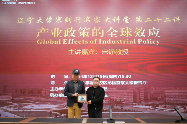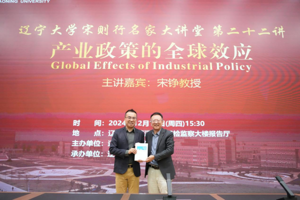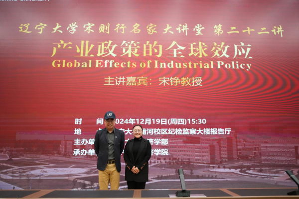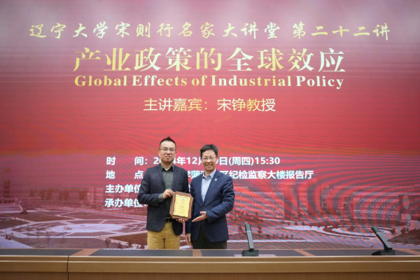 12月19日下午,辽宁大学宋则行名家大讲堂(第二十二讲)在蒲河校区纪检监察大楼报告厅举行。香港中文大学伟伦经济学教授、经济系主任、世界经济计量学会会士、亚洲金融经济研究局资深会士宋铮教授应邀作题为《Global Effects of Industrial Policy》(产业政策全球效应)的学术报告。第十四届全国人大代表,辽宁省第十四届人大常委会委员,辽宁大学党委副书记、校长余淼杰教授出席报告会并致欢迎辞。辽宁大学经济学部副主任霍伟东教授,经济学部副主任董保民教授和办公室主任孔晓副教授及英国正版365副院长张丹宁教授,英国正版365副院长张广辉教授参加报告会。报告会由英国正版365院长李政教授主持。